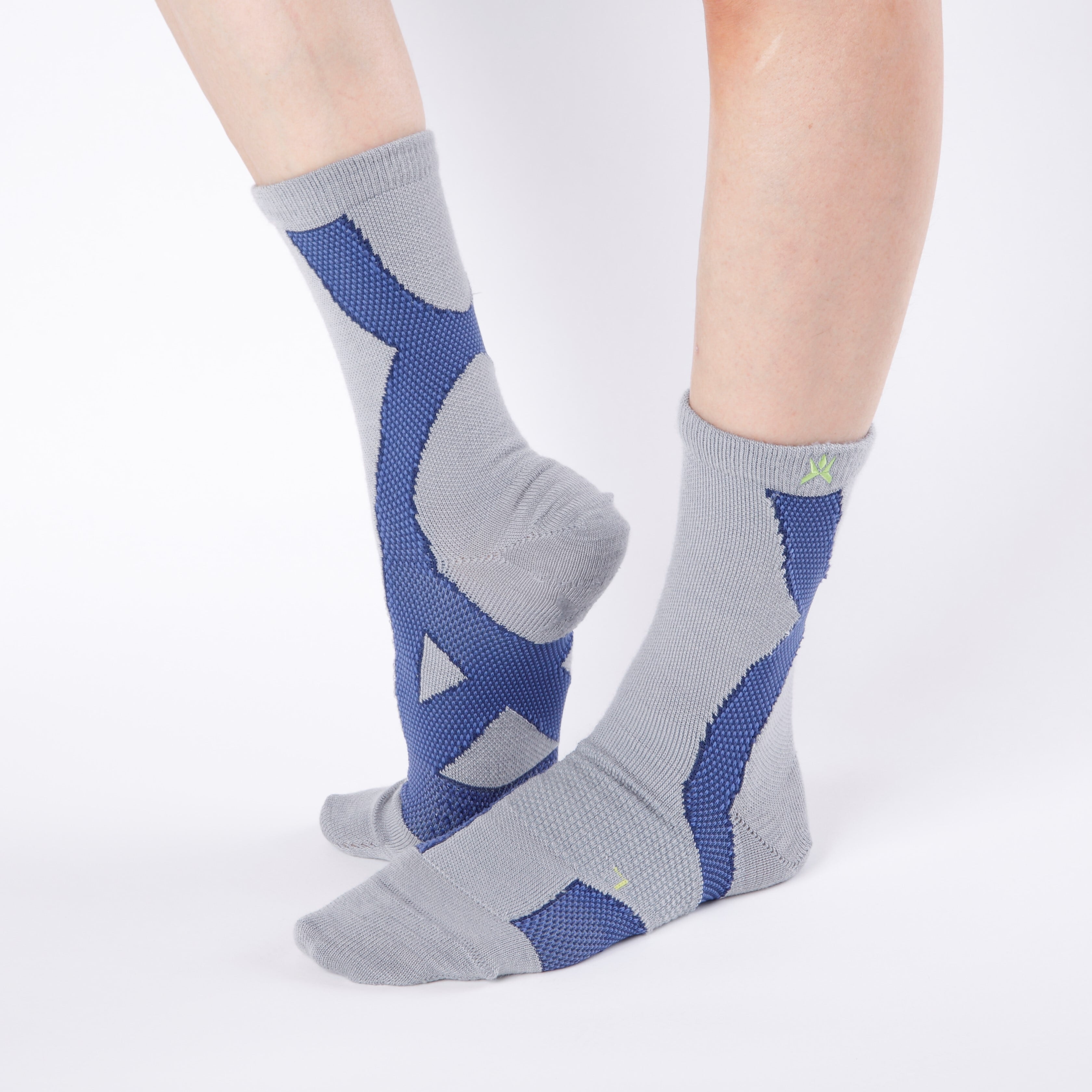 The Crew-Length model of Cross-Taping Socks. Covering the calf area in crew-length. It has an easy-to-wear round-toe type and an ergo-toe specification molded to fit the left and right toe shape. Designed for trail running, it covers the calf area. The material uses our exclusive wool yarn, blending several types of wool fibers in optimal proportions to achieve the desired functionality and strength required for sports. It provides highly heat retaining and moisture-wicking, ensuring comfortable feet even during long runs.