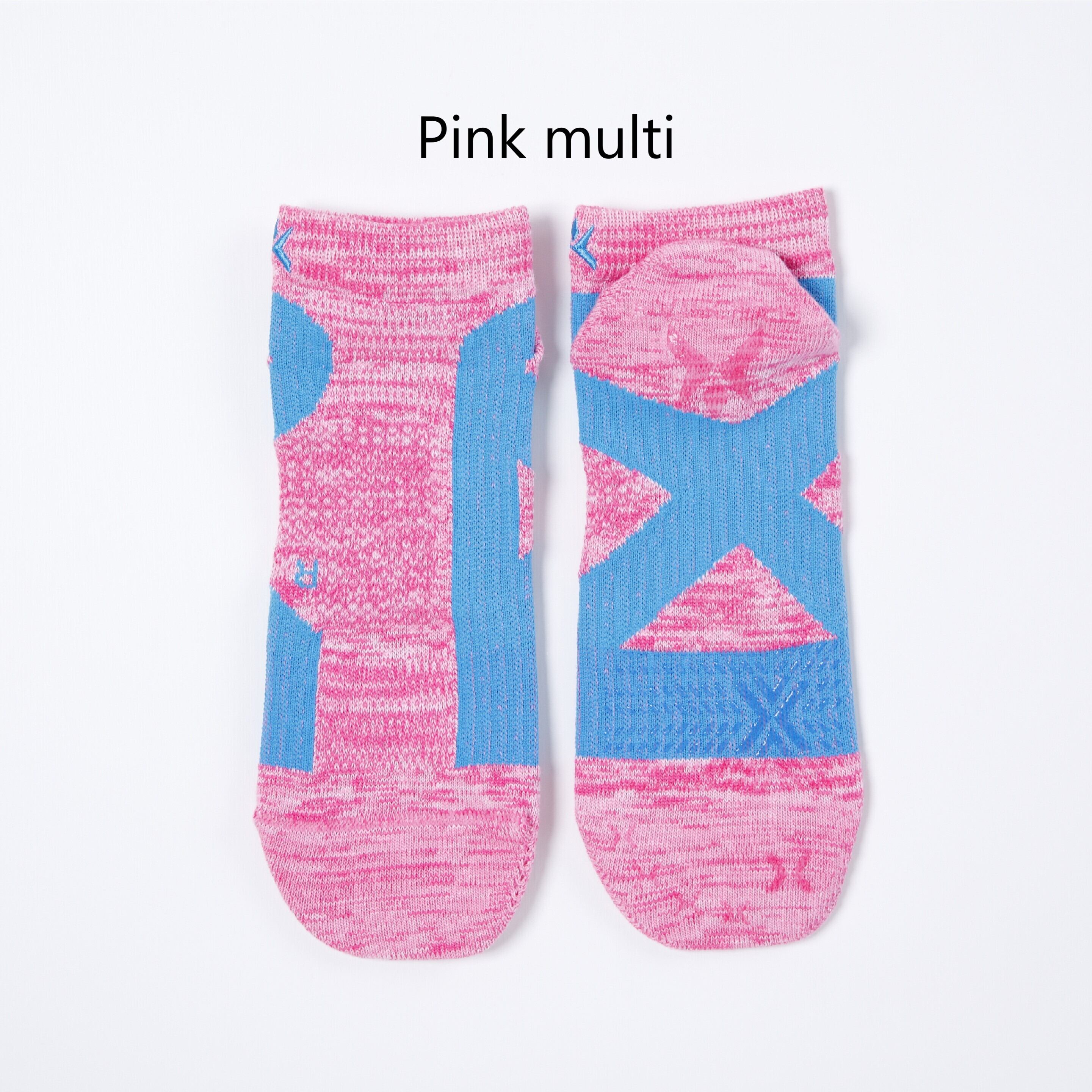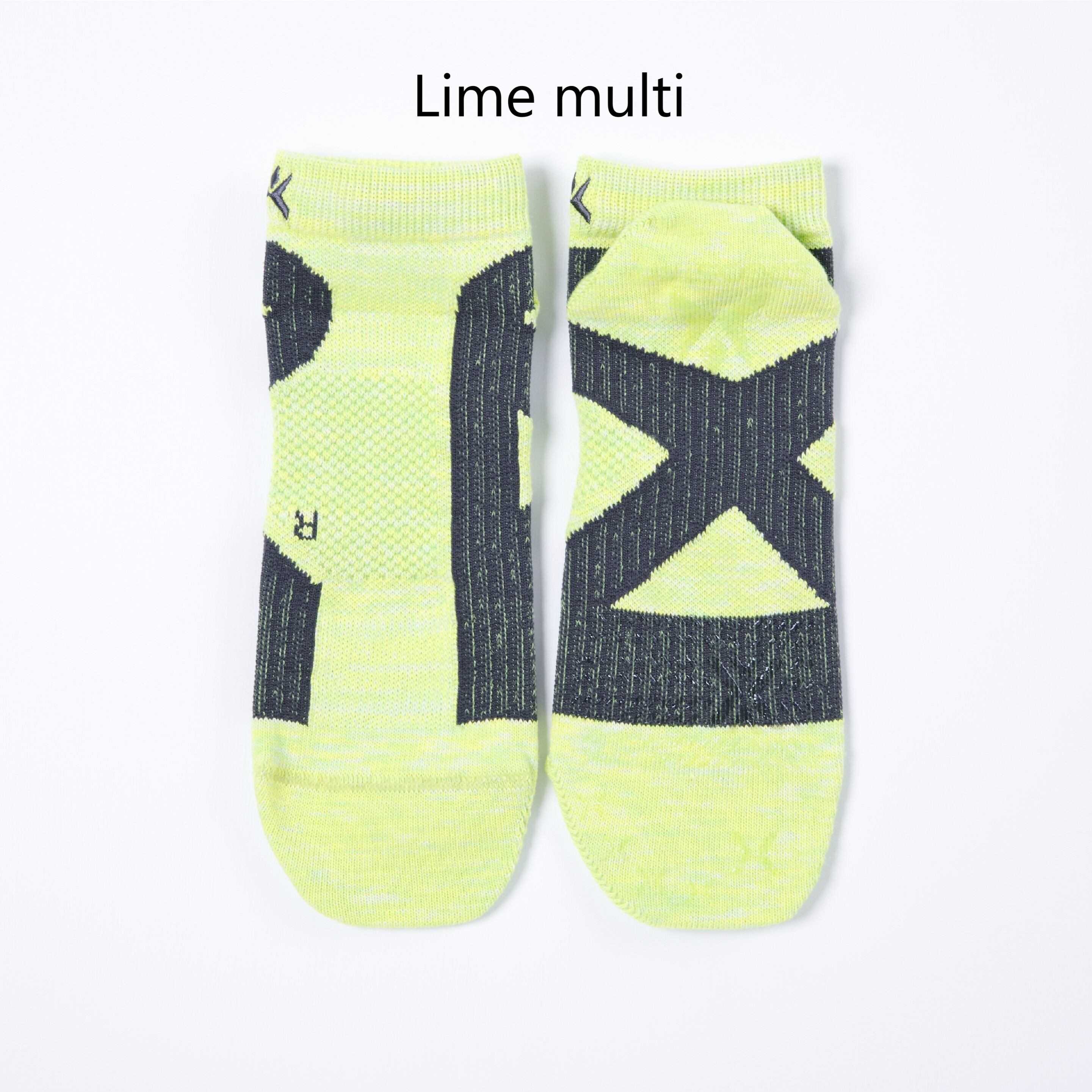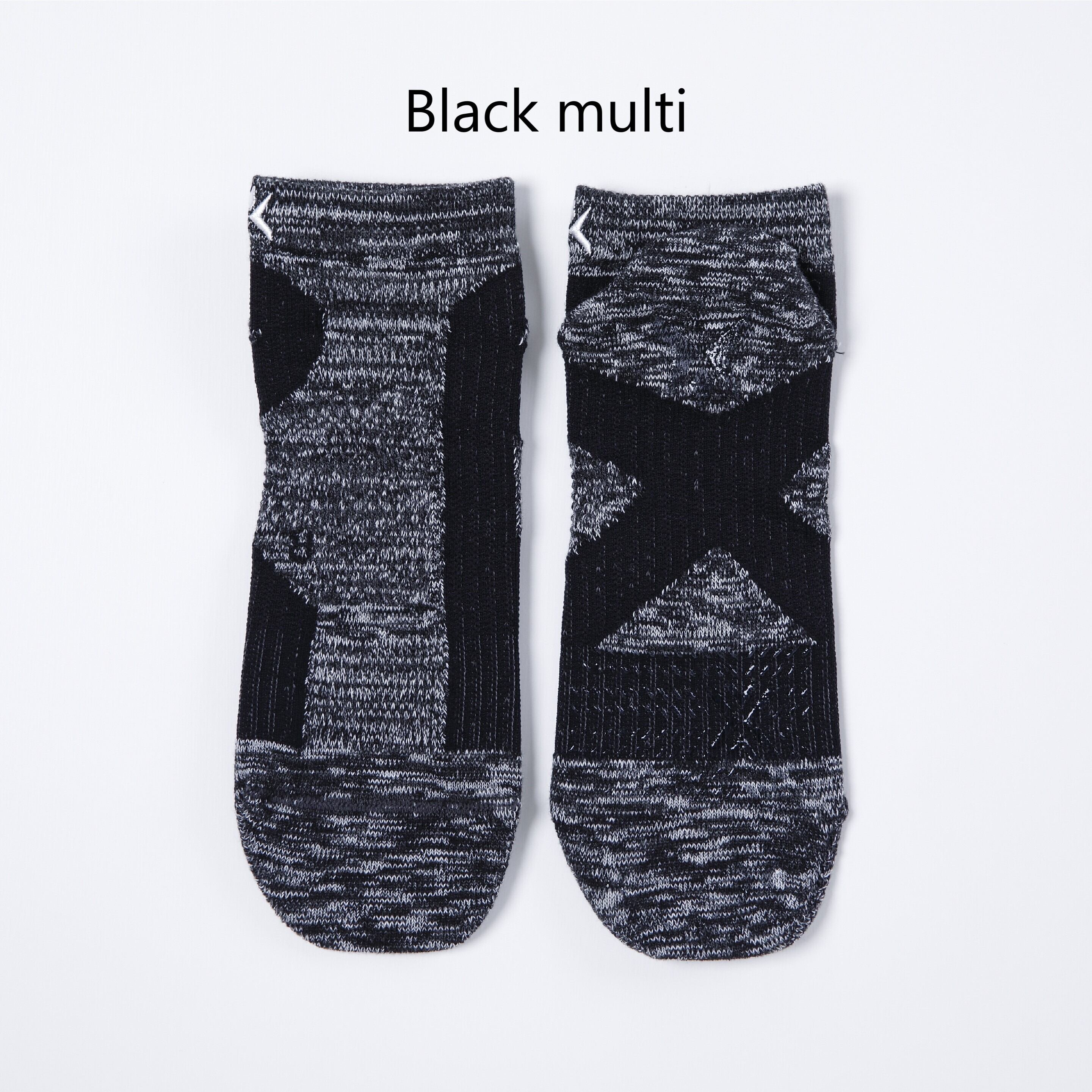 The short-length model of Cross-Taping Socks. Because of the multi-color heathered design, it may be worn not only for sports but also in casual occasions. It also has an easy-to-wear round-toe type and an ergo-toe specification molded to fit the left and right toe shape. The material is a comfortable blend of cotton and acrylic (sweat absorbent, quick drying, antibacterial and deodorizing). Additionally, the upper part of the sock features a mesh design for improved breathability.