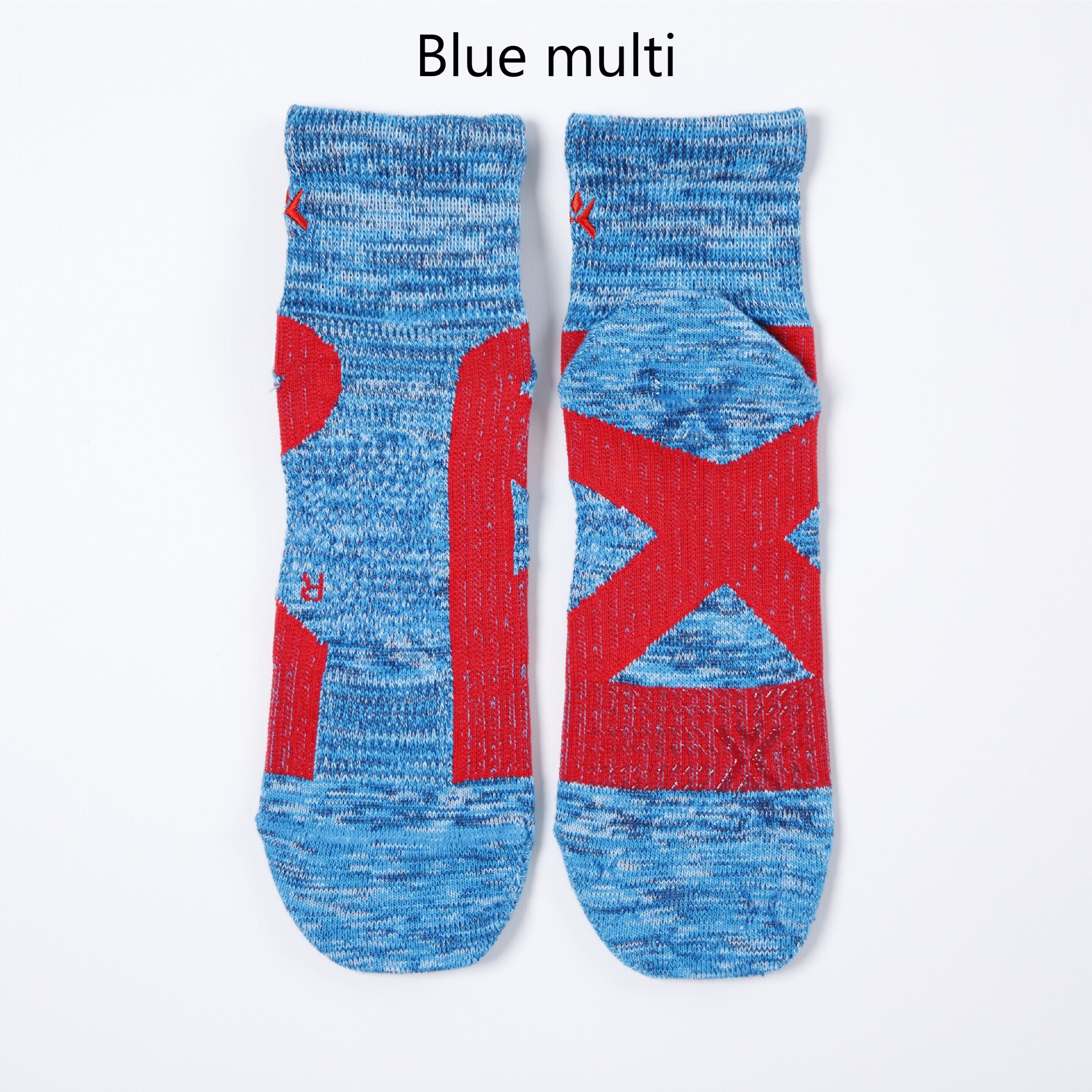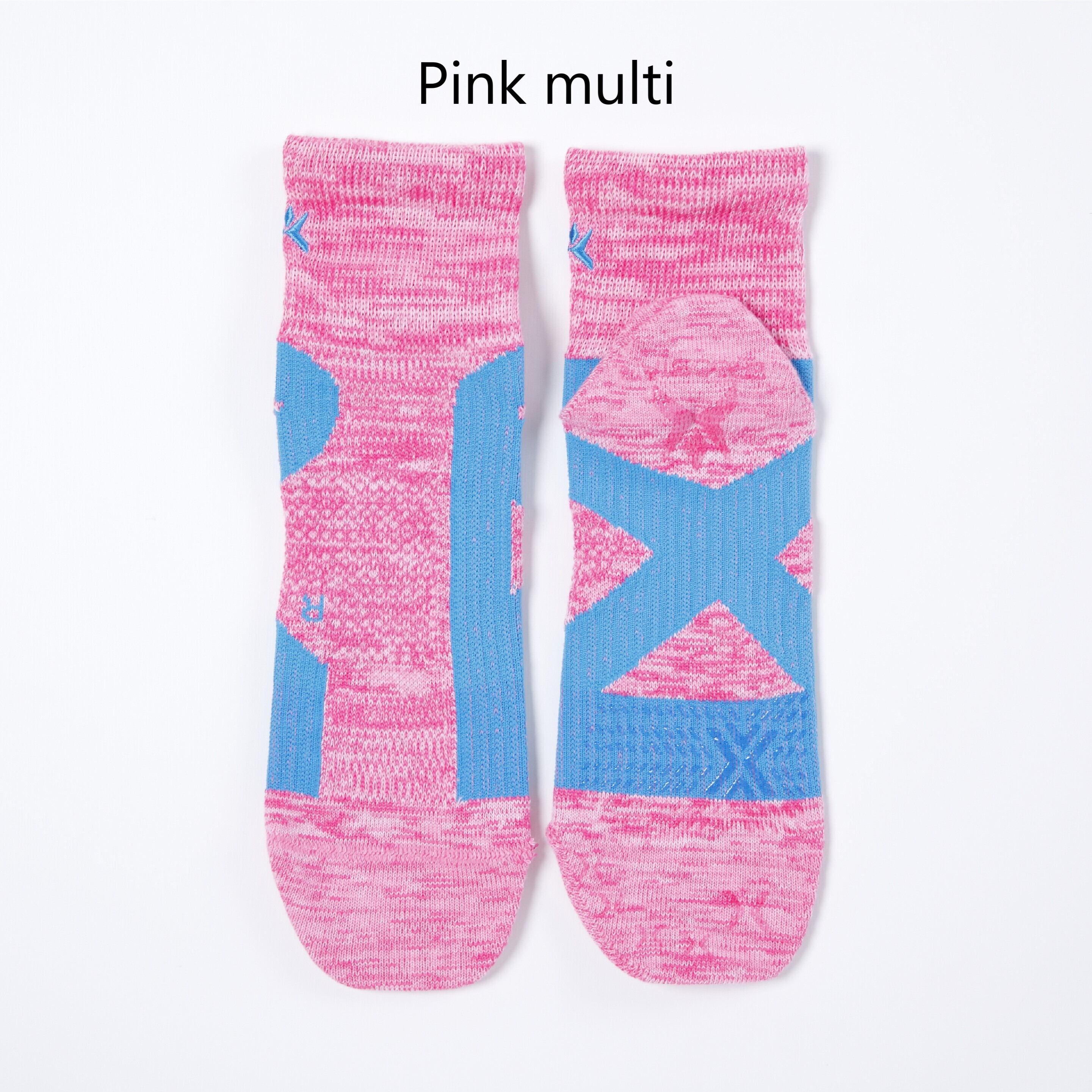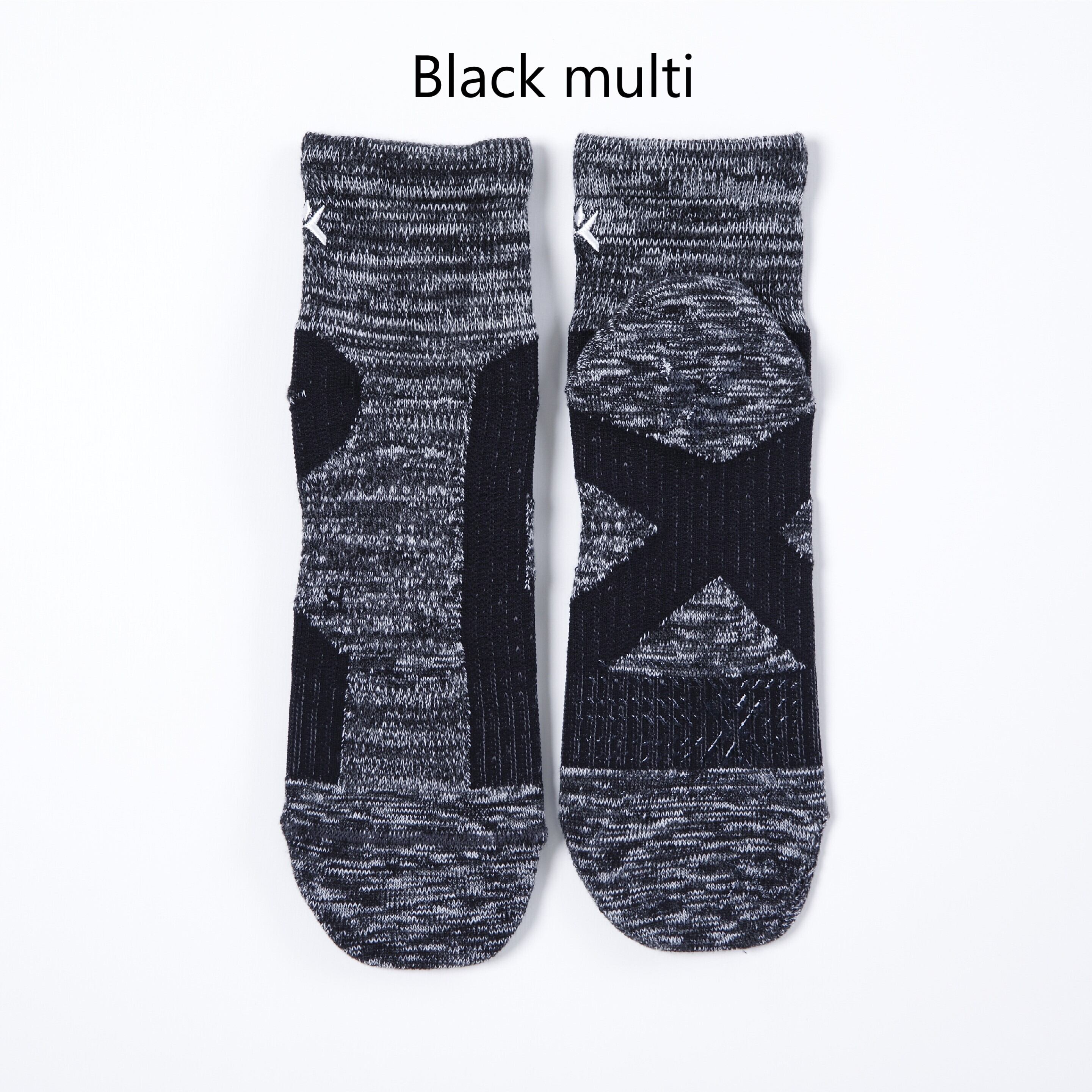 The middle-length model of Cross-Taping Socks, covering the ankles for protection and preventing the gap between the socks and the long tights or gaiters. Because of the multi-color heathered design, it may be worn not only for sports but also in casual occasions. It also has an easy-to-wear round-toe type and an ergo-toe specification molded to fit the left and right toe shape. The material is a comfortable blend of cotton and acrylic (moisture-wicking, quick-drying, and antibacterial). Additionally, the upper part of the sock features a mesh design for improved breathability.