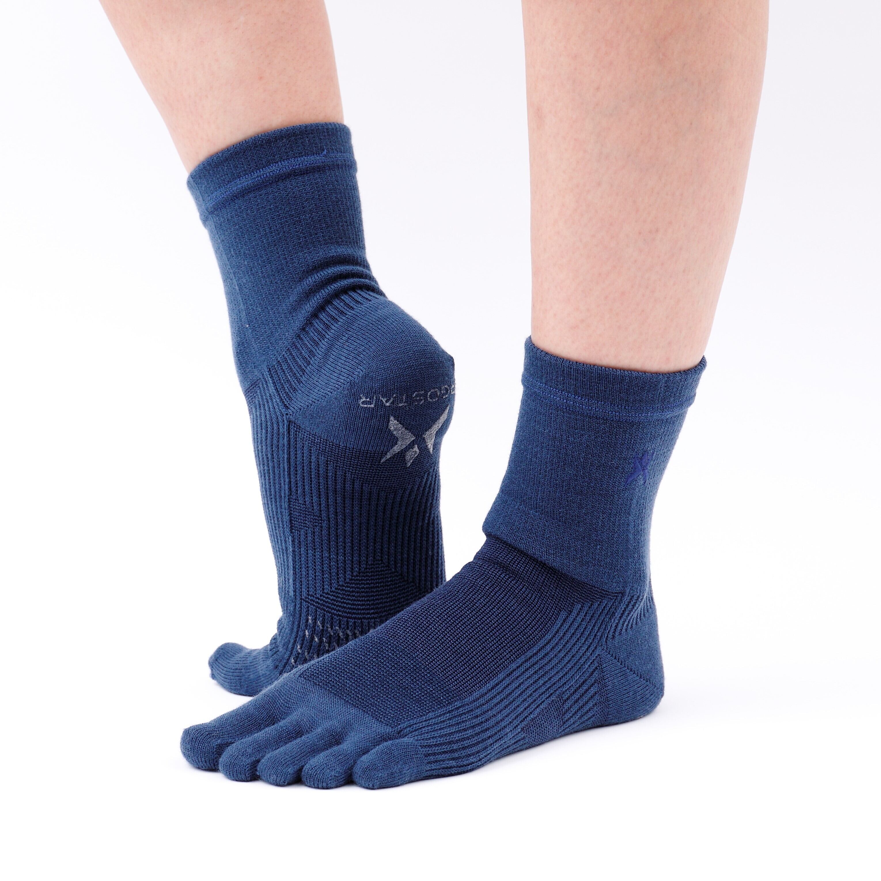 Cross-Taping Socks Wool 5-toe Middle-Length